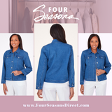 NEW VENDOR: Wit & Wisdom! Style: Trendy Tops and Jacket Colors: Ecru/Black, Biscotti, Navy/Ecru, Mediterranean Blue and White Fabric: Acrylic, Nylon, Spandex, Cotton/Rayon and Poly blends Sizes: Missy Sizes Unique Features: Fun, Trendy and Unique Fashions that include an Open Crochet Sweater with Flared Sleeve and Cuffs; Denim/Sweater Knit Combo Jacket with Zip Front and Flared Sleeves; Stripe